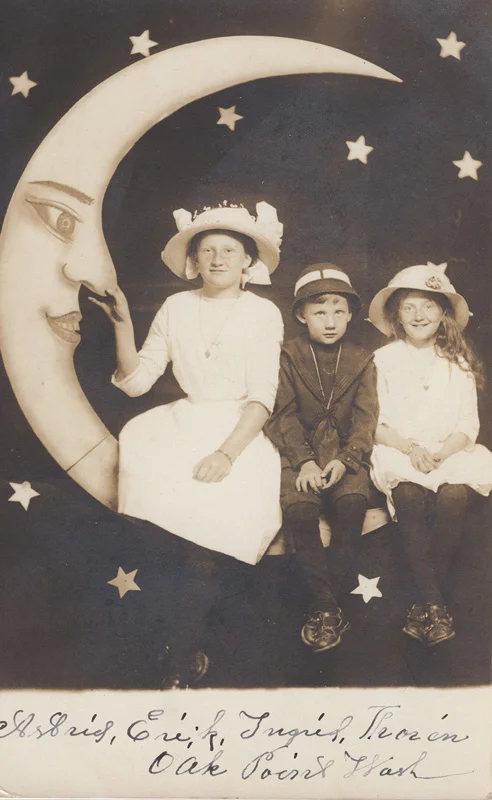 Thanks to census records at Cowlitz County's genealogy website I learned the children's parents were likely named Mr. and Mrs. Karn and Peter Thorén from Sweden. The surname spelling and spelling of the children's names on the census differ from the spellings here. There's also another male sibling named Pierre not pictured; every member of the family is listed as being born in Sweden.