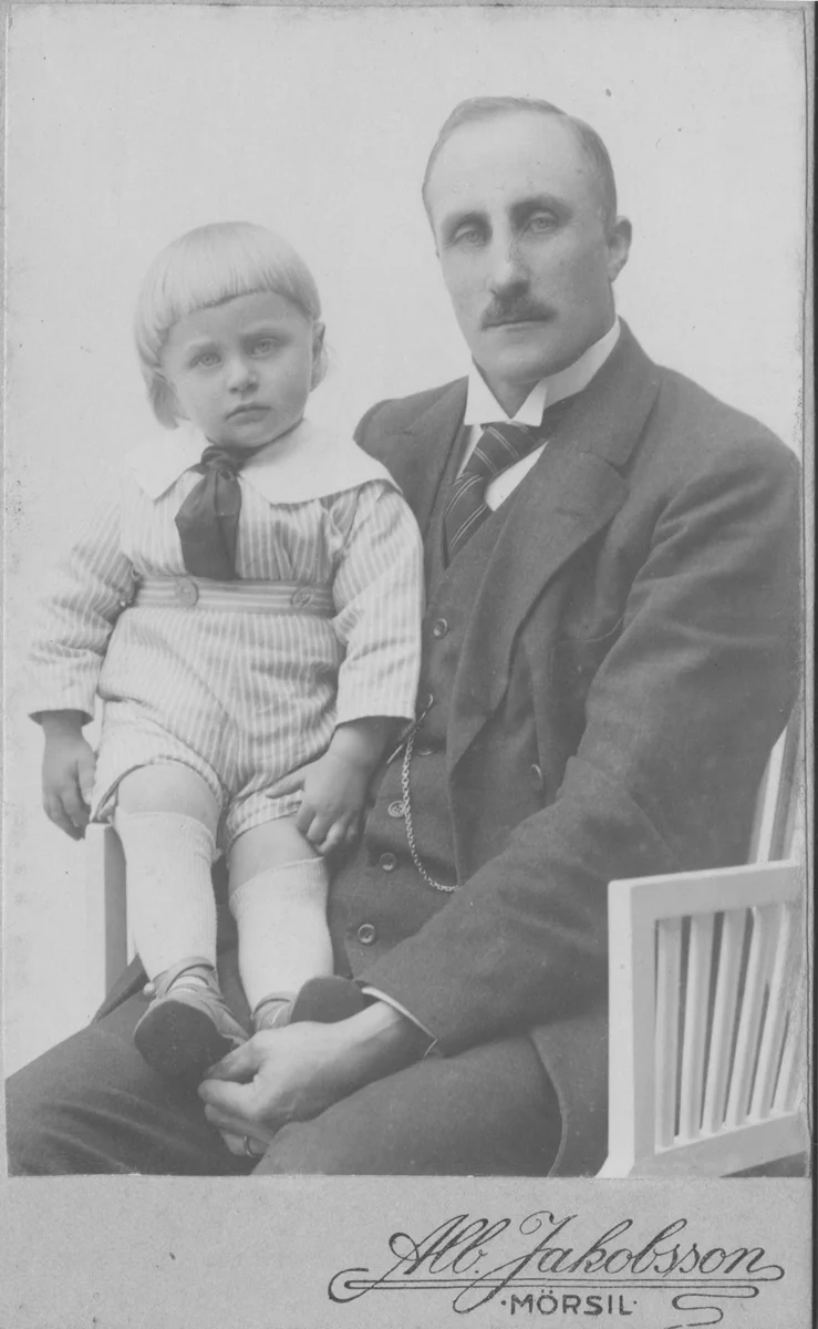 Persson's first wife Kristina Erika Thilander died Jan. 28, 1902. Kristina was raised on the Slater farm in Rödön, near Krokom, Sweden. After her death Erik Andreas was left with his 1 year old son John Erik Petrus Holger Persson, born Oct. 5, 1901. Soon after [his] startup hardware and blacksmith business failed in Lit, Erik Andreas left his infant son with his dead wife's sister Ottolina Thilander in Rödön, May 7, 1903. On May 12, 1903 Erik Andreas emigrated to the U.S., stopping briefly in Minnesota before settling in Portland, OR.